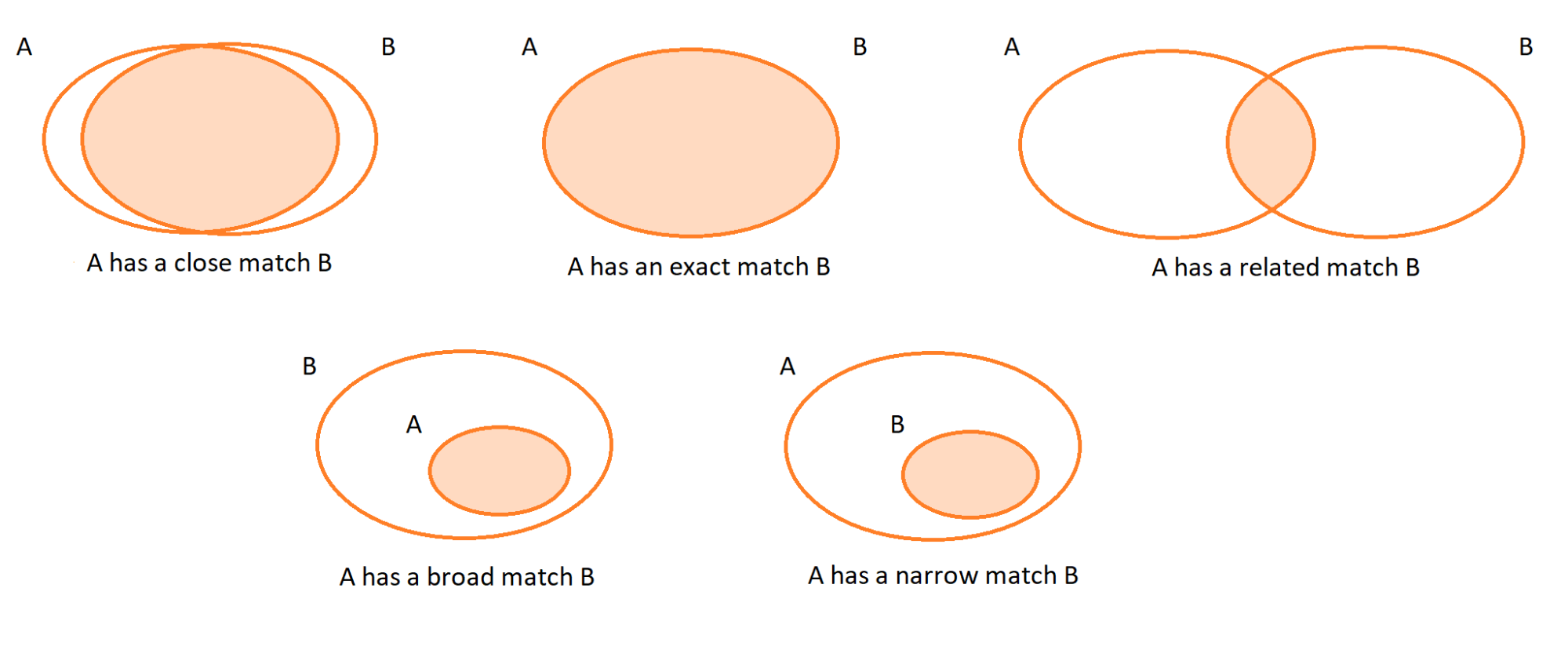 Figuur 2: De SKOS mapping-eigenschappen. Enkele voorbeelden verduidelijken: