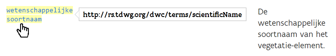 Figuur 4: De URI van het attribuut wetenschappelijke naam. Tabel 3 geeft het resultaat van deze mappingsoefening weer voor de eigenschappen en het object (Boom) in onze voorbeelddataset.