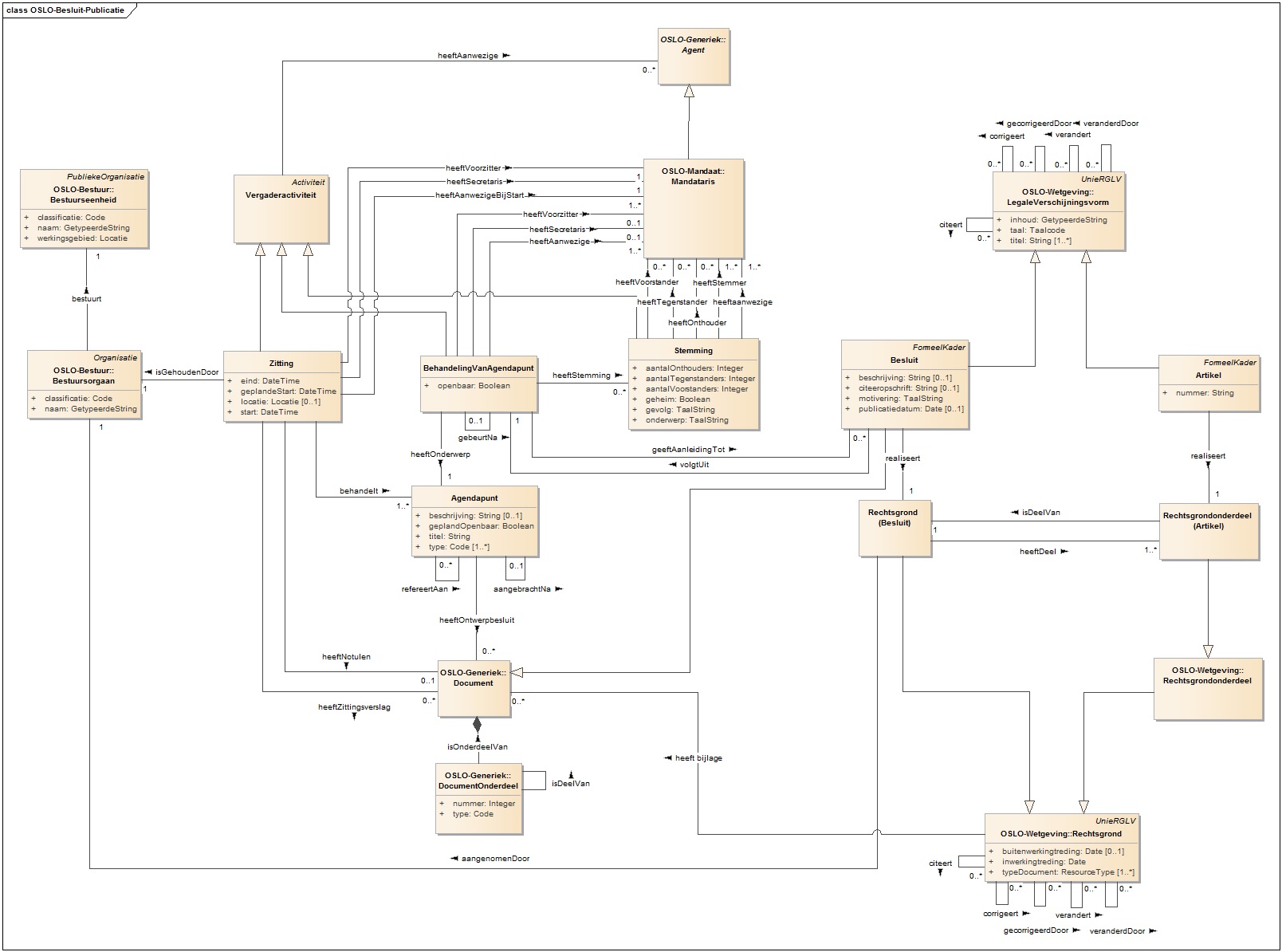 De kardinaliteiten zijn redelijk restrictief daar de structuur en inhoud van besluiten vastligt en gevolgd moet worden om rechtsgeldigheid te bekomen.