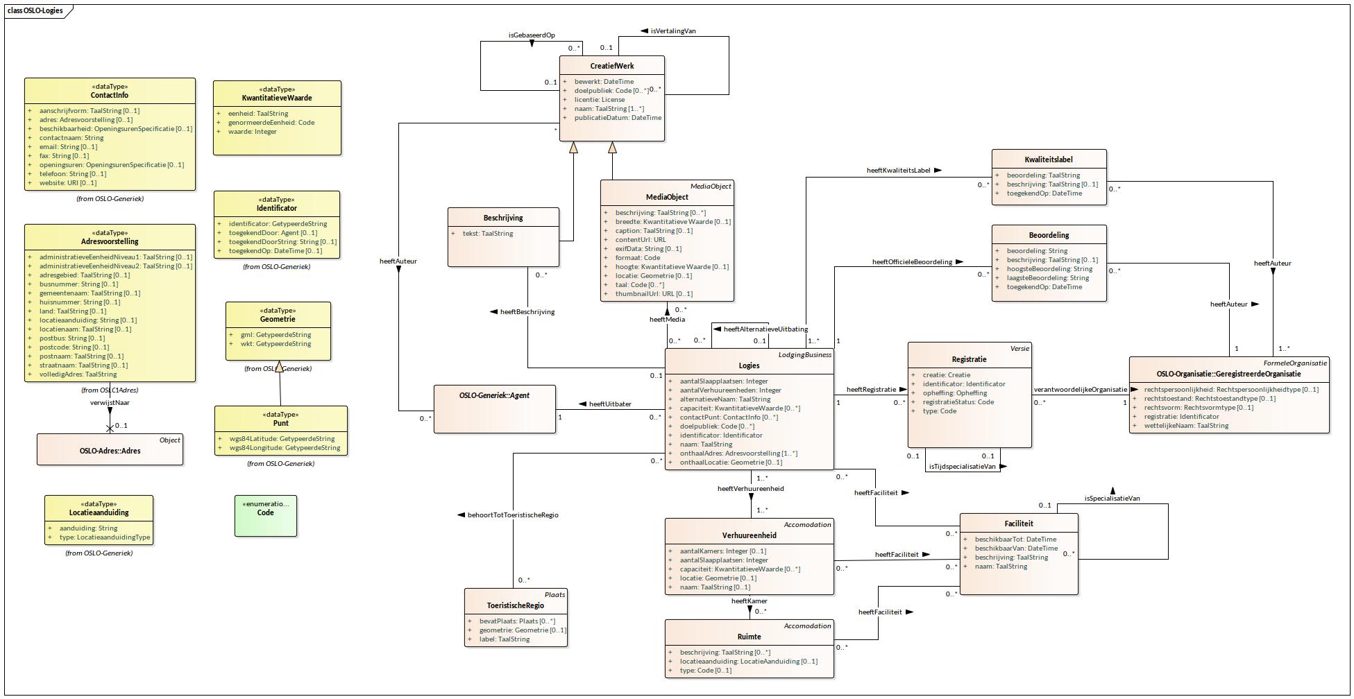 Dit applicatieprofiel beschrijft een informatiemodel om (kern)informatie over logies uit te drukken. Het profiel is sterk geïnspireerd op de richtlijnen van schema.org ( "Markup for Hotels", EN) en de aanbevelingen van de W3C community group "tourism data" . Deze internationale richtlijnen zijn uitgebreid en vertaald naar de Vlaamse context, zodat er semantisch geïntegreerd kan worden met bestaande OSLO standaarden en basisregisters zoals het adressen - en organisatie register. Er werd ook rekening gehouden met het Toeristisch Vocabularium 0.9.